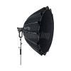 Aputure Light Dome 150 je profesionální softbox určený pro filmovou a televizní produkci, který poskytuje měkké, obepínající LED světlo s přirozenými kruhovými odlesky a vysokou směrovostí vhodnou pro natáčení, broadcast a komerční produkce. Kombinuje velký průměr 150 cm s hlubokou konstrukcí pro přesné modelování světla a flexibilitu při práci v terénu i ve studiu.