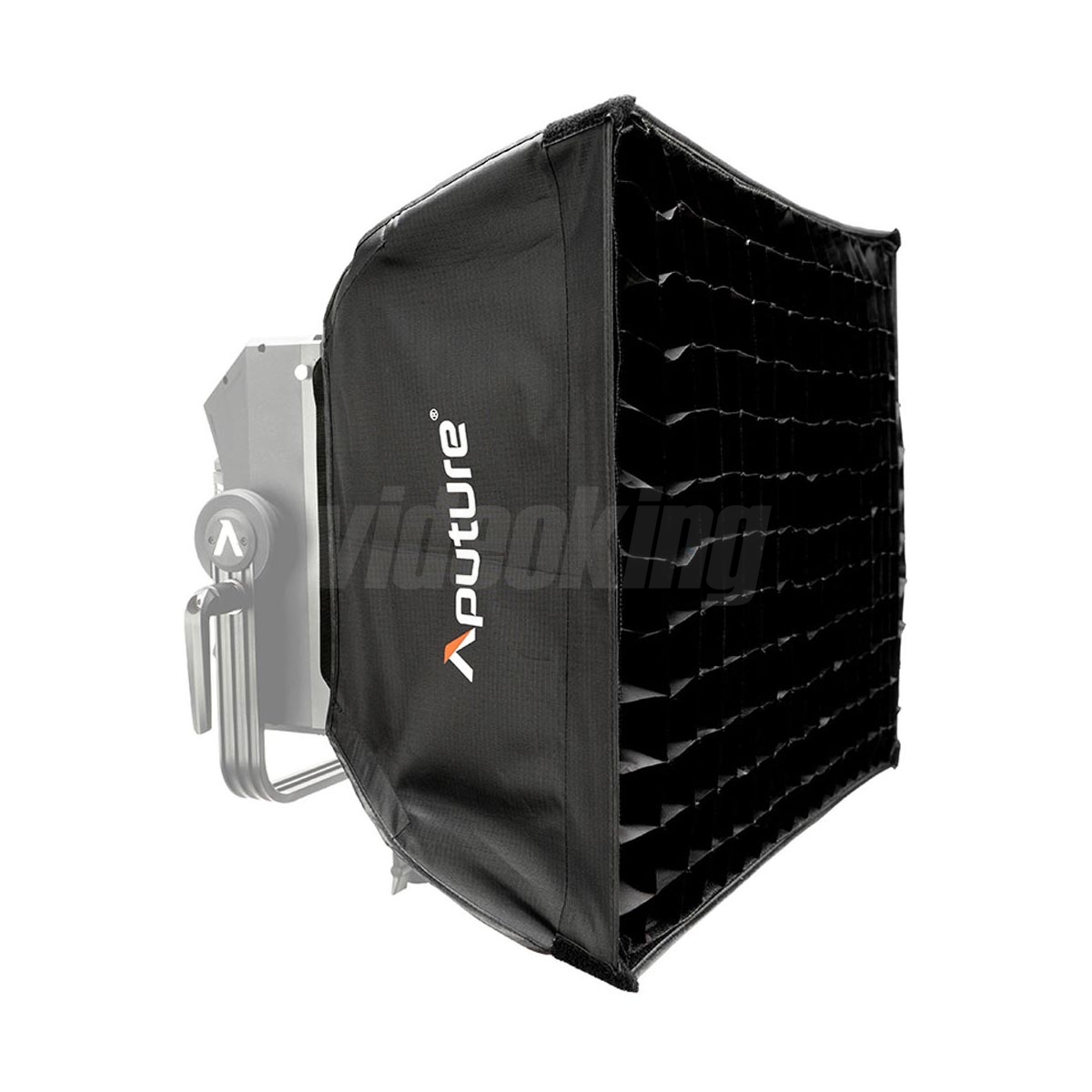 Softbox zjemňuje a rozptyluje výstupní světlo P300c tak, aby eliminoval ostré přechody a nerovnosti v osvětlení scény. Konstrukce je navržena tak, aby se zařízení snadno zasunulo do určeného kanálu na zadní straně panelu, což zkracuje čas montáže a snižuje riziko nesprávného upevnění. Přední difuzor je odnímatelný — při jeho demontáži funguje přední plocha jako velký reflektor pro směrové, ale stále relativně měkké osvětlení. Pro přesné řízení světla je součástí 40° mřížka (grid), která omezuje rozptyl a minimalizuje světelné vytečení mimo zamýšlenou oblast.