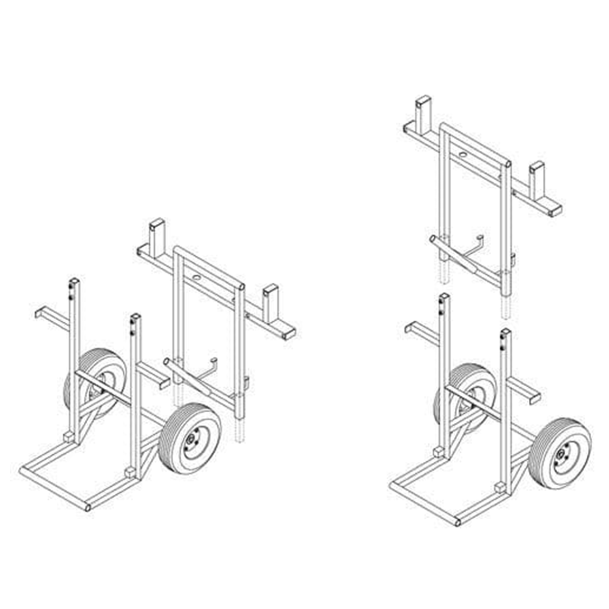 – Materiál: ocelová konstrukce s hliníkovými zesíleními, pryžové/PU kolečka