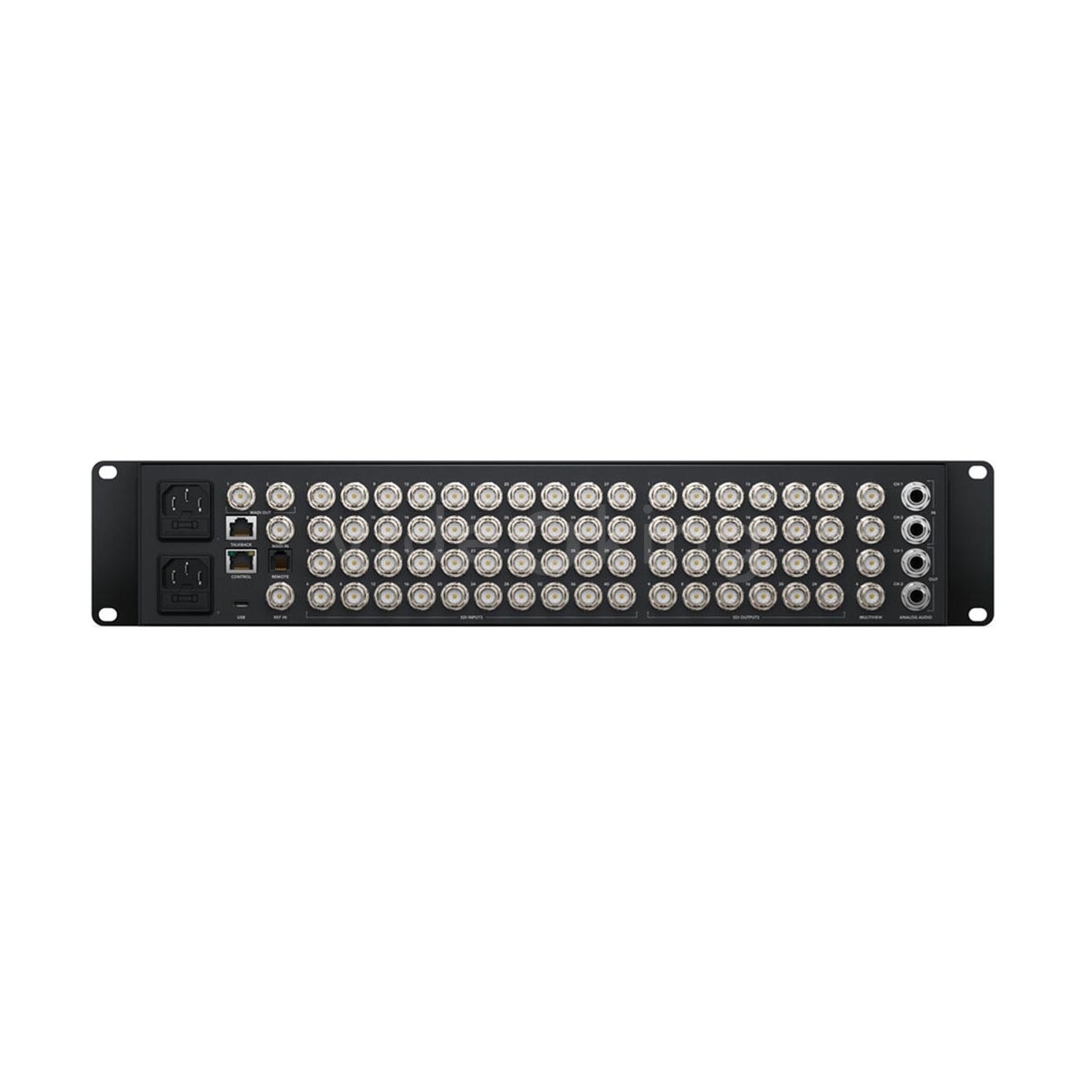 – Další funkce: generátory barev a testovacích vzorů, redundantní napájení (dle varianty), kompatibilita s ovládacím softwarem Blackmagic Design a podporou pro externí panely a ATEM Software Control .