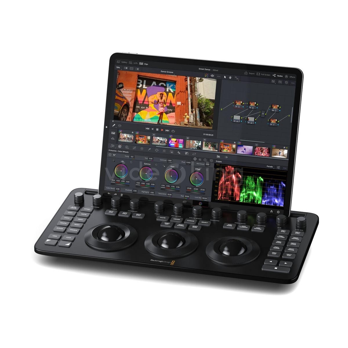Pro postprodukční týmy a coloristy: Panel zkracuje dobu, kterou strávíte klikáním v rozhraní, a zvyšuje přesnost při ladění tonality a barevné konzistence napříč epizodami či reklamními spoty. Fyzické ovládací prvky podporují citlivé, plynulé přejezdy a plynulé přechody u složitých gradingových úloh.