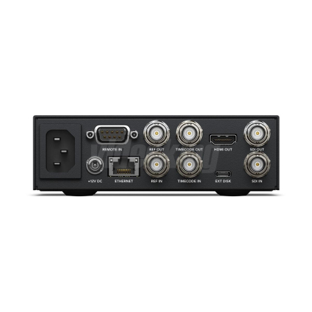 – Vstupy a výstupy: 1× 3G‑SDI vstup, 1× 3G‑SDI výstup, 1× HDMI výstup; timecode I/O a referenční I/O; RS‑422; USB‑C; 1G Ethernet.
