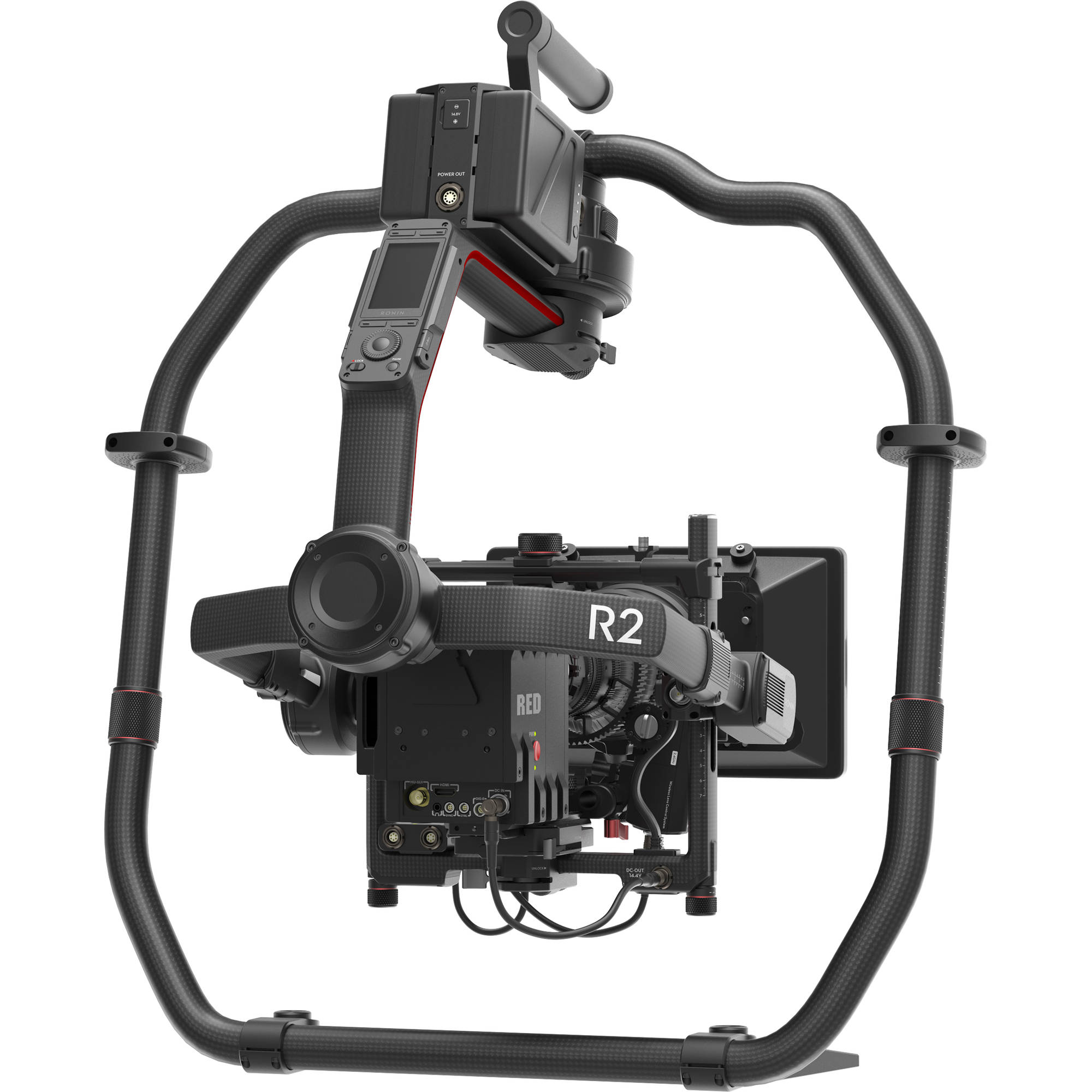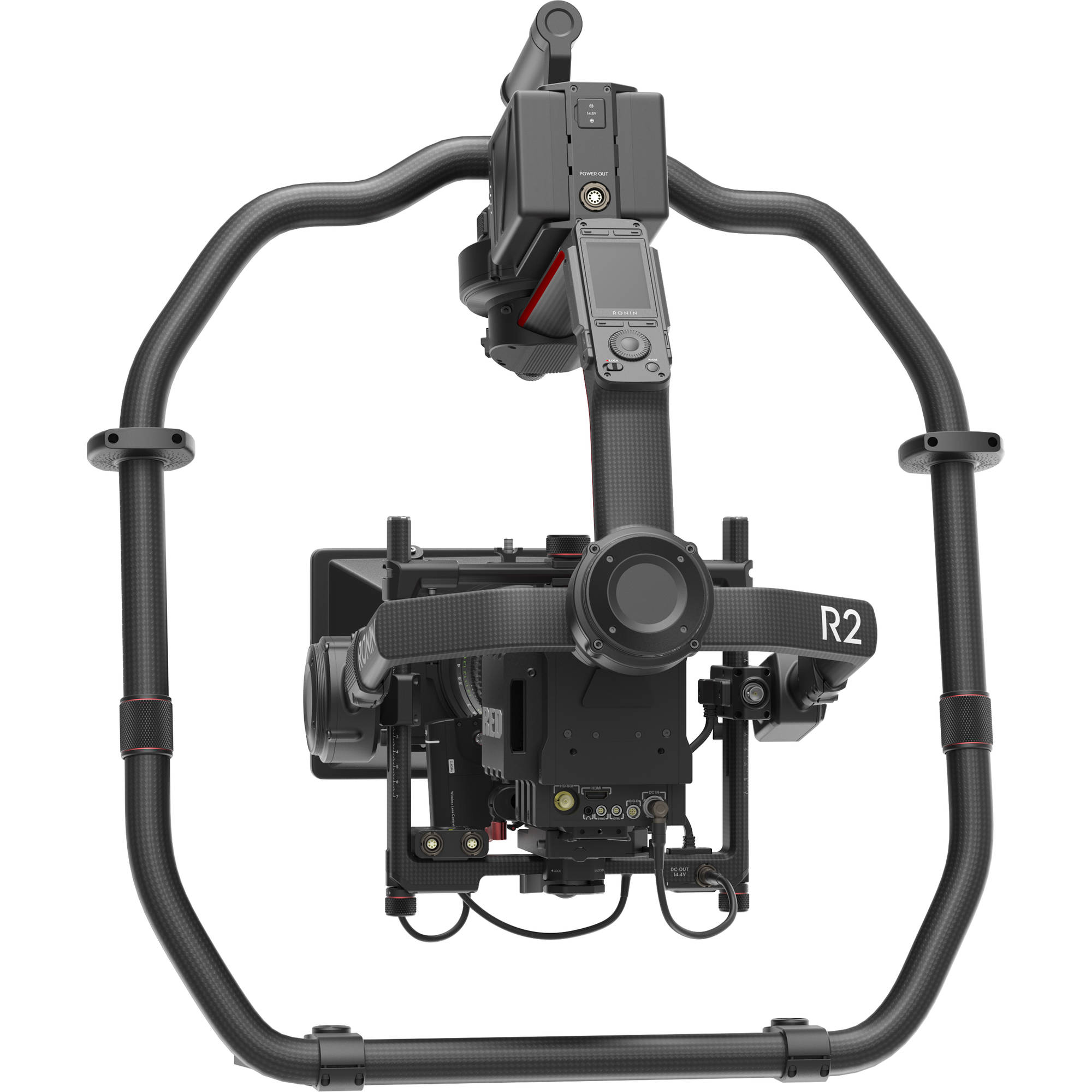 Design je modulární: sklápěcí nohy a samo-stojící konstrukce umožňují rychlé nasazení a stabilní odložení těžké sestavy bez nutnosti samostatných stojanů. Ronin 2 poskytuje také 2osý režim kompatibilní s Steadicam, což rozšiřuje možnosti integrace do hybridních stabilizačních řešení. Integrované napájení na palubě napájí kameru a příslušenství, zatímco vyměnitelné, samohřejivé baterie zajišťují provoz i v chladných podmínkách a prodlužují čas natáčení bez přerušení. Systém dovoluje duální ovládání — dvěma operátorům — pro oddělení řízení kamery a pohybu gimbalu, což je standardní požadavek v profesionální produkci.