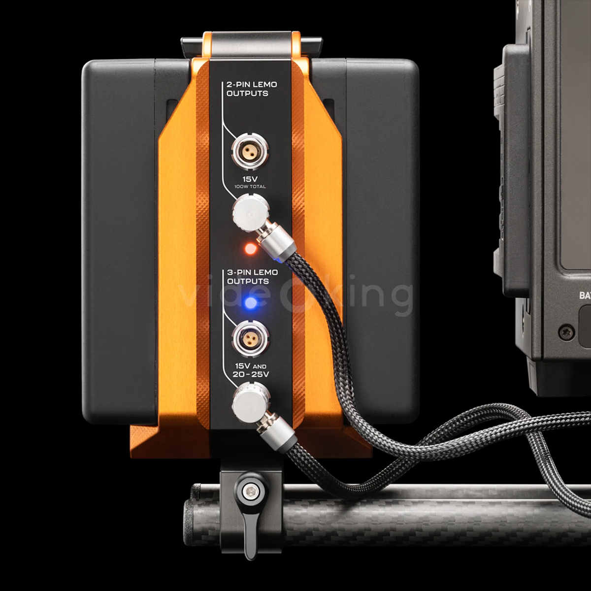 – Robustní a spolehlivé spoje: Pevně zapadající 3-pin Lemo konektor na straně zdroje zajišťuje bezpečné a bezvibrační spojení, klíčové při pohybu kamery na rameni, steadicamu nebo ve vozidlech.