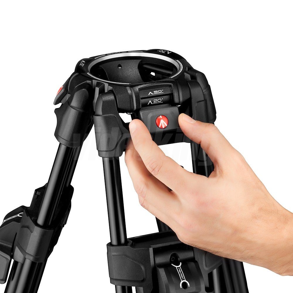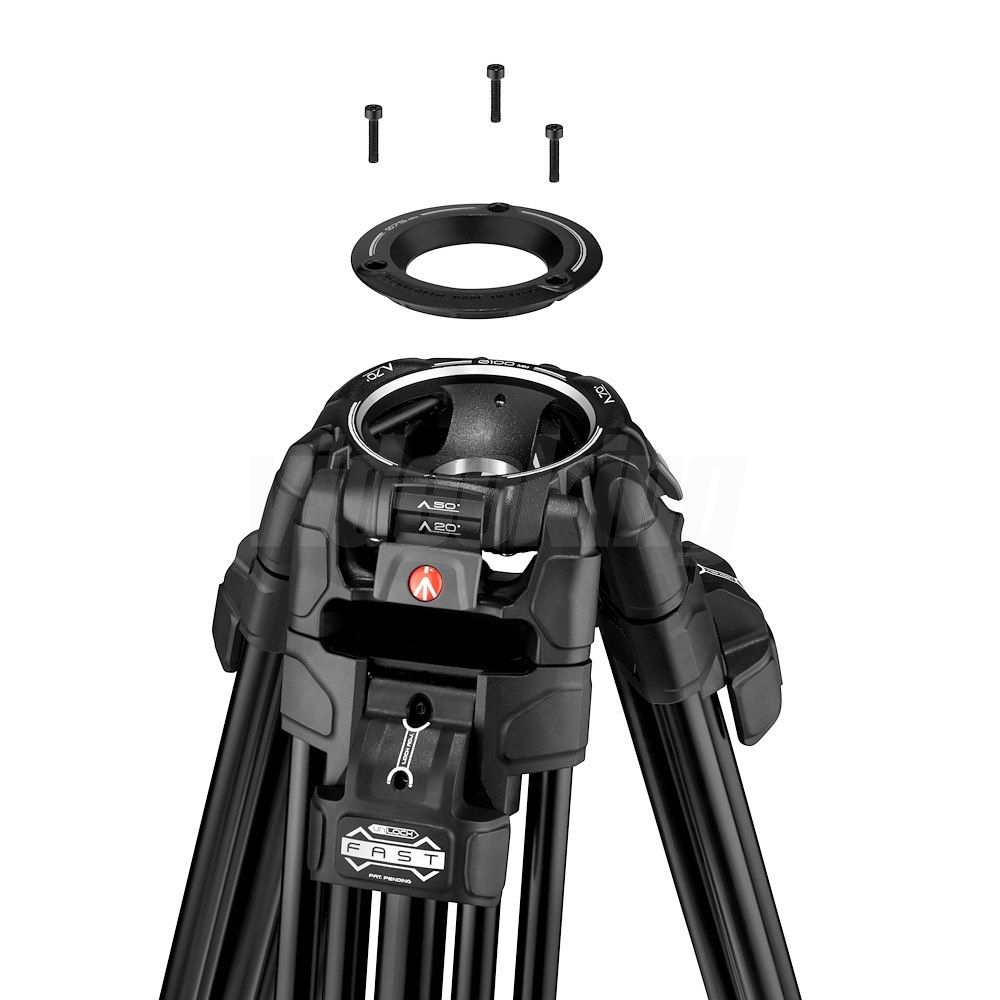 Stativ kombinuje pevnou hliníkovou konstrukci s ergonomickými FAST zámky nohou, které zrychlují rozložení a umožňují bezpečné aretování nohou bez otáčení každé sekce samostatně. 100mm polokoule poskytuje standardní rozhraní pro profesionální videohlavy a systém je dodáván s adaptérem 100→75 mm pro kompatibilitu se 75mm hlavami, což zajišťuje flexibilitu při nasazení v různých studiových i field scénářích. Mechanismus volby úhlů nohou umožňuje rychlé přechody mezi třemi pevnými pozicemi, nebo úplně otevřenou (volnou) pozicí, která usnadňuje práci v členitém terénu či nízké snímkové práci.