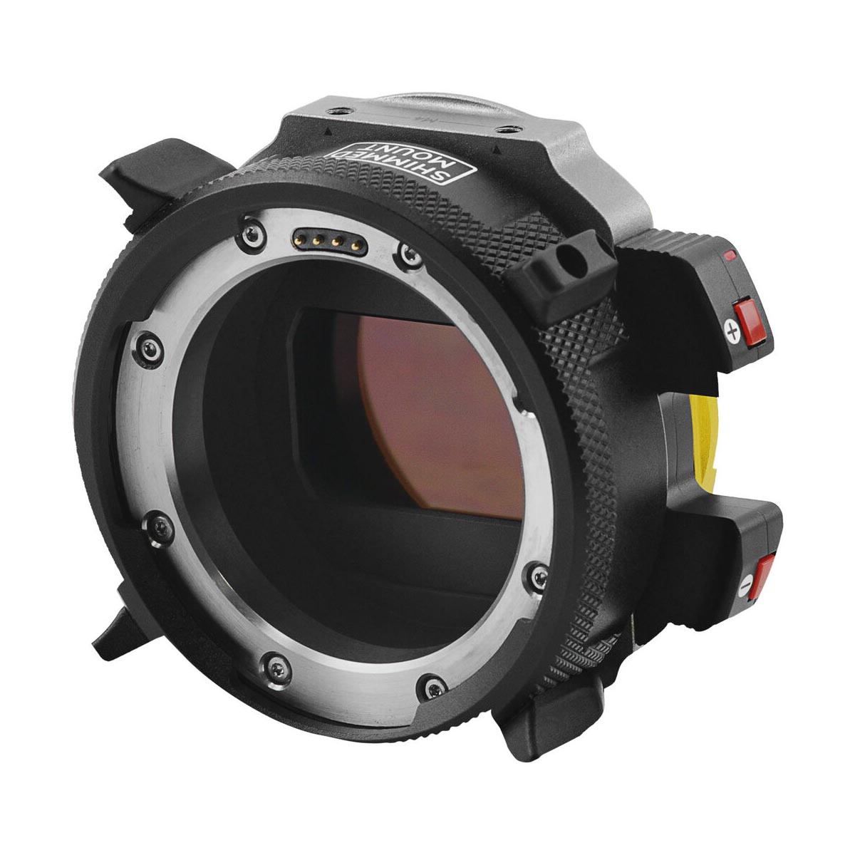 Celé jádro adaptéru je tvořeno titanovou konstrukcí, která kombinuje vysokou mechanickou odolnost s nízkou hmotností, a je shimovatelné pro přesné nastavení flange focal distance (FFL) — klíčové pro zachování přesné ostrosti a kalibrace objektivů ve studiovém i terénním provozu.