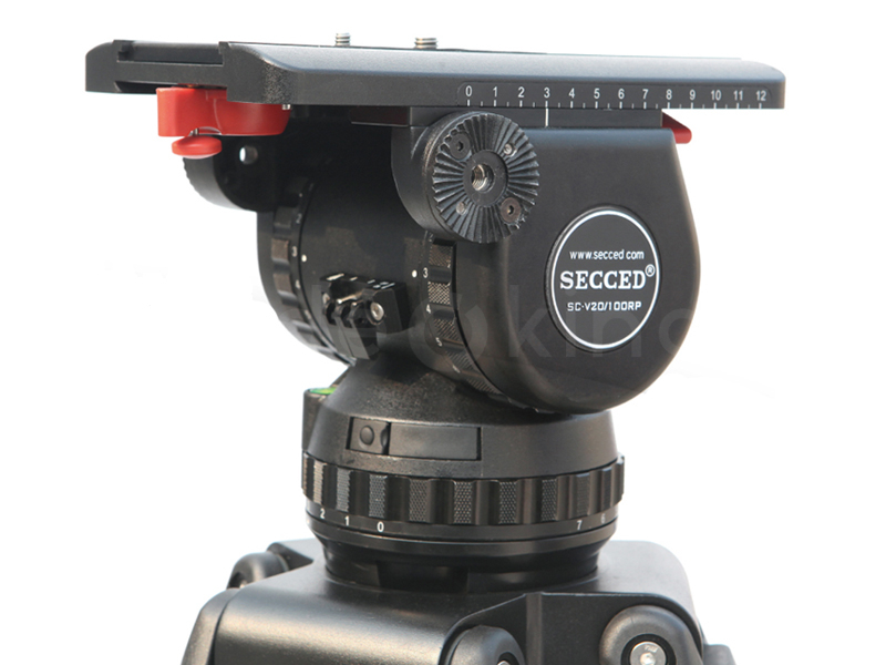 Fluidní hlava (SC-V20/100RP) je důkladně propracovaná s posíleným 8-krokovým protiváhovým systémem (0-7 stupeň nastavení). 8-stupňový (0+7) systém tlumení je odolný vůči změnám teploty a umožňuje jemný, vysoce kvalitní pohyb kamery i při extrémních klimatických podmínkách. Technologie tlumení nejvyšší kvality, bez tření. Rozsah zatížení: 3kg – 32kg. Maximální užitečné zatížení se vztahuje na celý rozsah naklonění, tj. od -75° do +90°. Je ideálním řešením pro přenosné těžké broadcast kamery a kamkordéry. S fluidní hlavou dosáhnete přesného, precizního pohybu, bez jakéhokoliv otřesu – je výbornou volbou při práci s velkými teleobjektivy. Hlava je vybavena také svítící vodováhou.