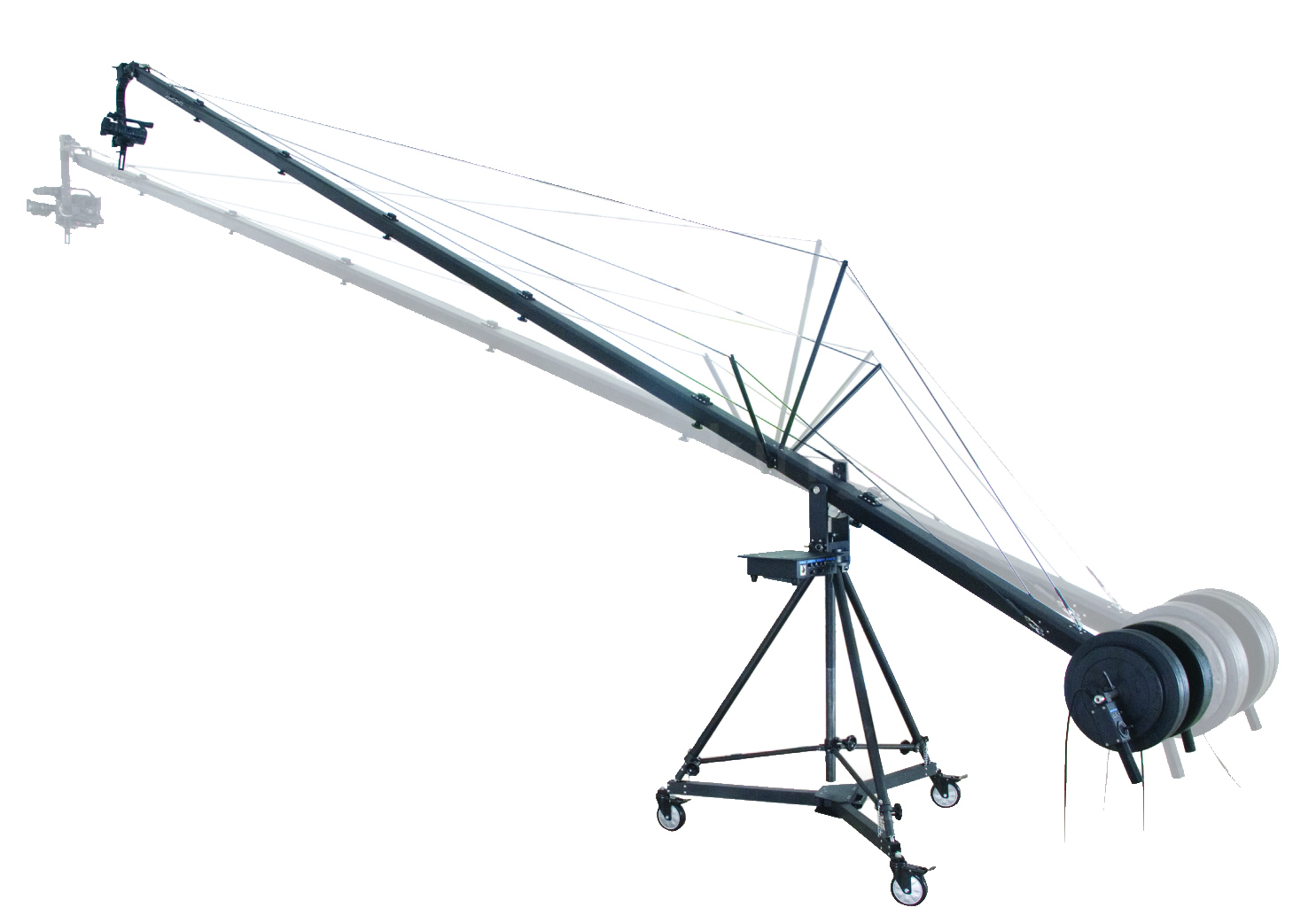 This crane system can control either DV&HDV camera or ENG format camera, so there are two modes available. Switch between DV mode and ENG mode can be easily completed by only changing the camera, a few cables and one controller.