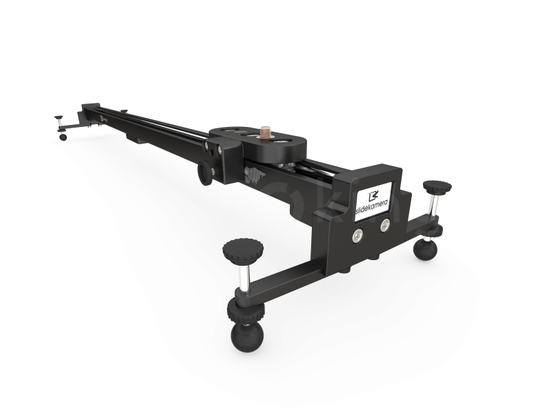 Aluminium construction of the rail guarantees stregth and lightness of the device. There are two stainless steel (INOX) bars inside the rail. It is also equipped with a central mounting port with 3/8“ and 1/4“ holes, and two 3/8“ holes, on both ends of the rail, that allow to mount the device on two tripods.Number of mounting holes allowing to mount various accessories in a variety of combinations provide universality of our device and provide the user with great configuration possibilities. Length of rail depends on Slide Kamera model. Available lengths: 600mm, 1000mm. Aluminium AF-9 side feet provide stability on uneven and challenging ground.