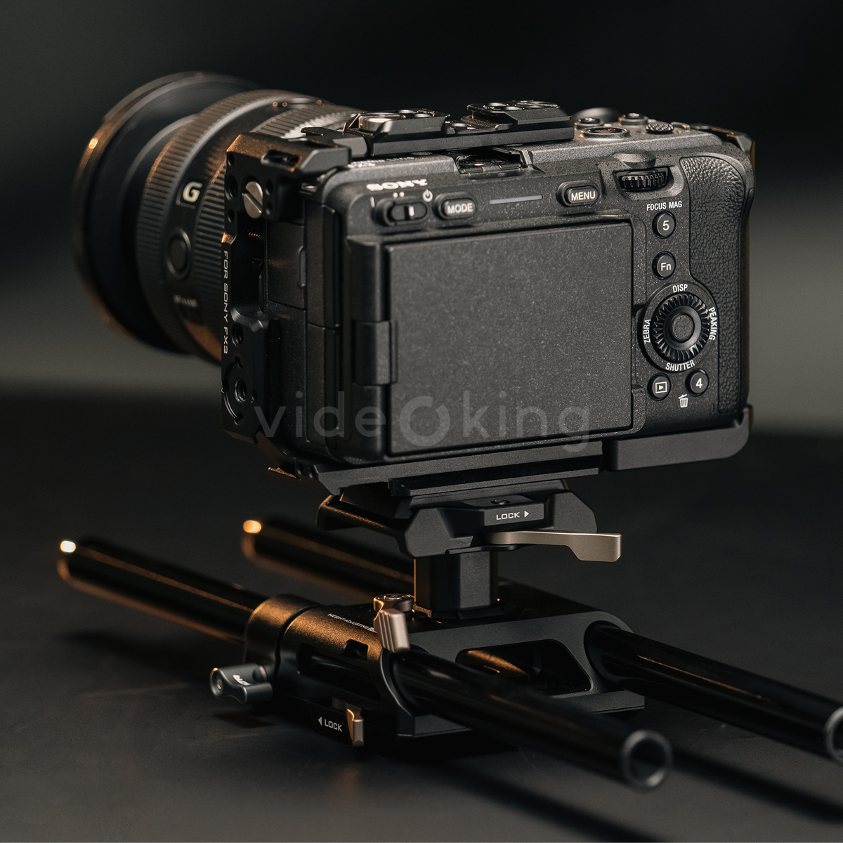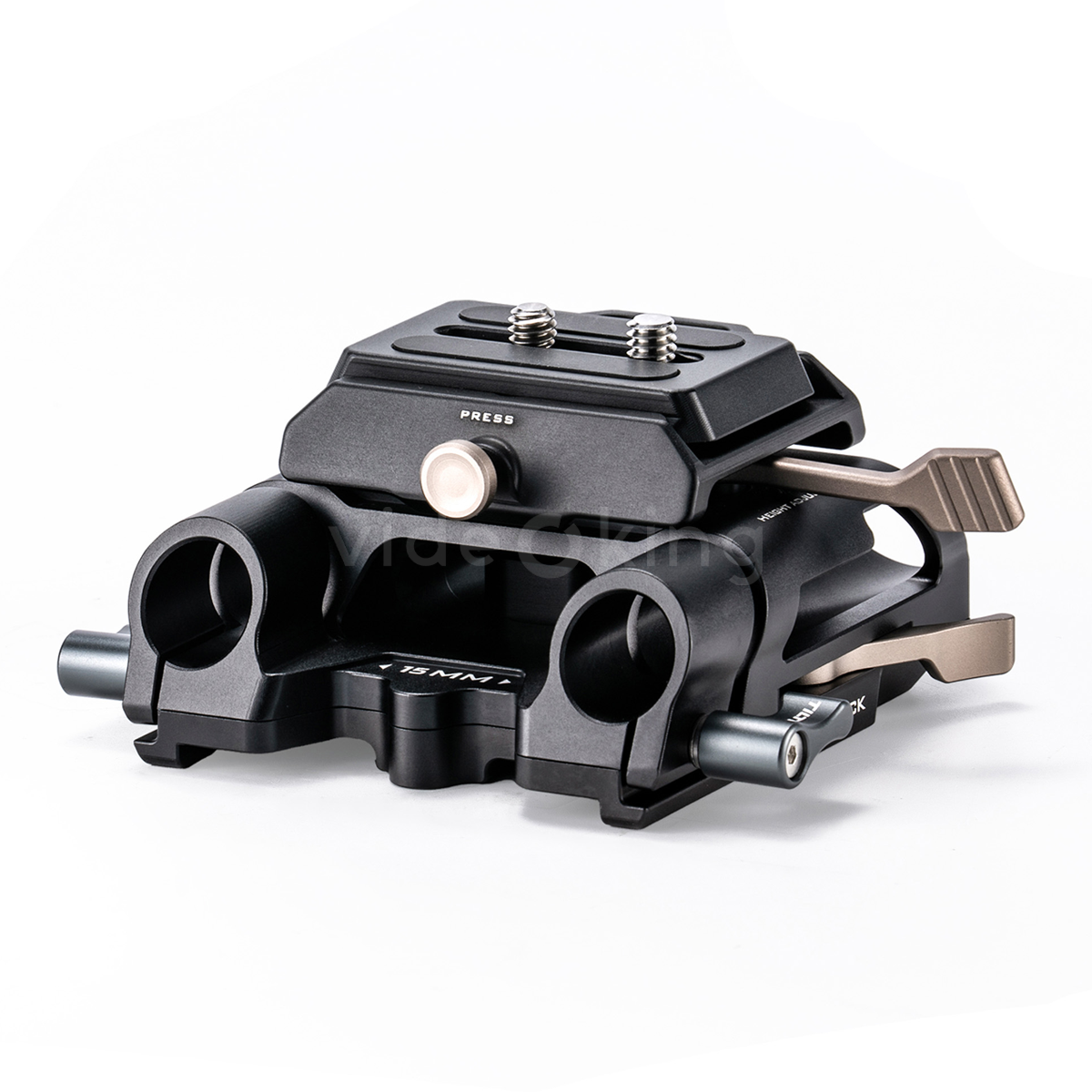 Integrovaný výškově nastavitelný mechanismus pro 15mm LWS tyče umožňuje jemné nastavení výšky kamery v rozsahu, který vyhovuje různým objektivům, follow focus systémům a matte boxům. Precizní šroubový mechanismus zajišťuje opakovatelnost nastavení a eliminuje boční vůli, což je klíčové při přesných focus pulls a složitých kamerových pohybech.