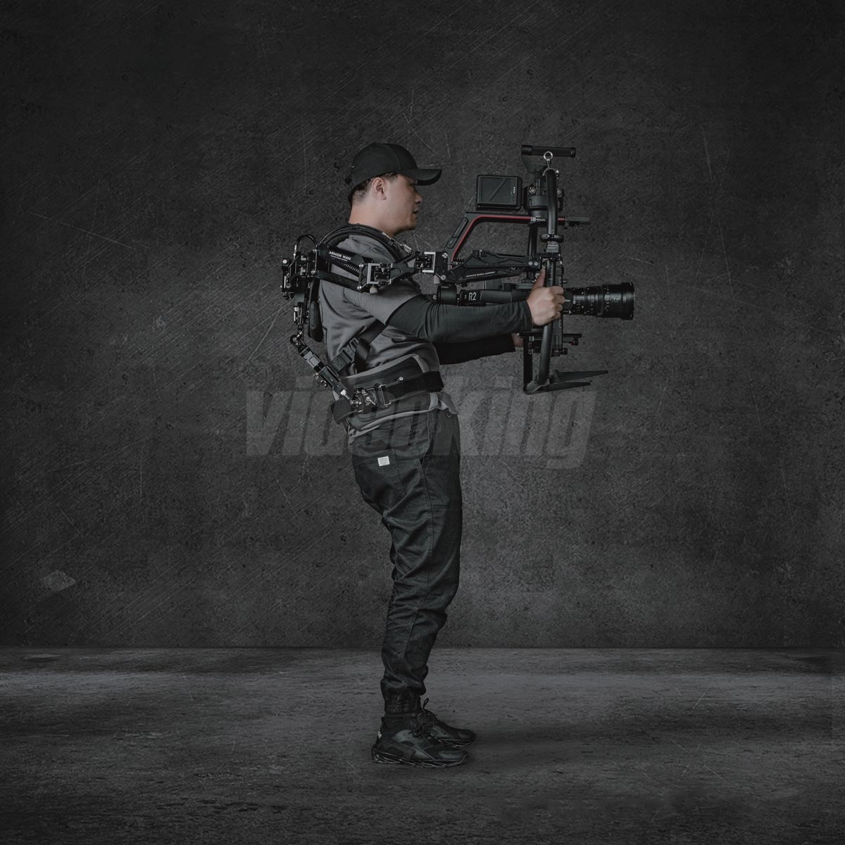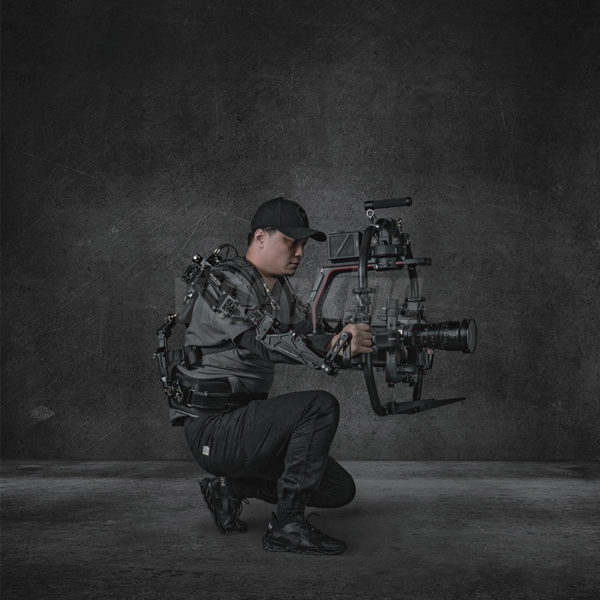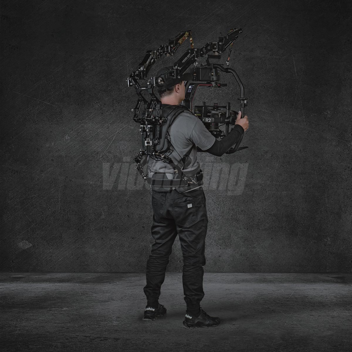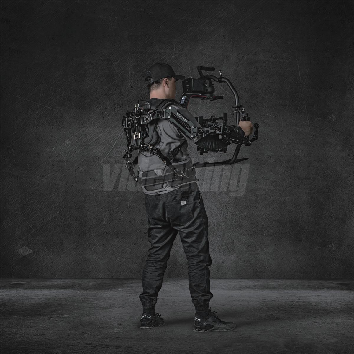 Konstrukce je vyrobena z lehkých, odolných materiálů optimalizovaných pro opakované profesionální nasazení; exoskeletonový rám poskytuje pevnou oporu při dynamických pohybech a zároveň dovoluje dostatečnou volnost pohybu pro složité choreografie kameramana. Systém podporuje individuální nastavení pro různé postavy operátorů a různé hmotnosti kamerových sestav, což je klíčové pro multi‑kamerové produkce či natáčení s velkým arzenálem objektivů a příslušenství.