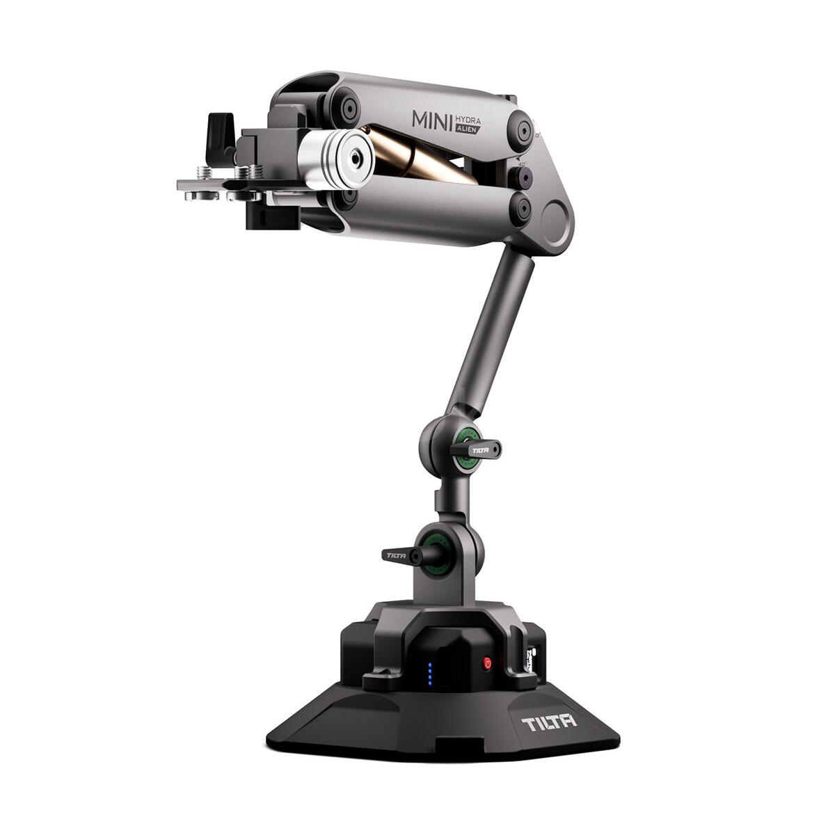 TILTA Hydra Alien Mini Car Mount Kit with Electronic Suction Cup – Titanium Gray je kompaktní profesionální držák pro upevnění kamer, gimbalů a filmového příslušenství na karoserii vozidla, navržený pro použití v automobilových záběrech, broadcastu a produkčních nasazeních, kde je požadována opakovatelnost, bezpečnost a minimalizace vibrací.